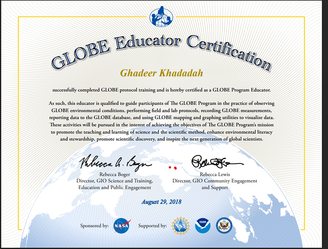 Formal Educator, GLOBE Working Group, Mentor Trainer, Trainer