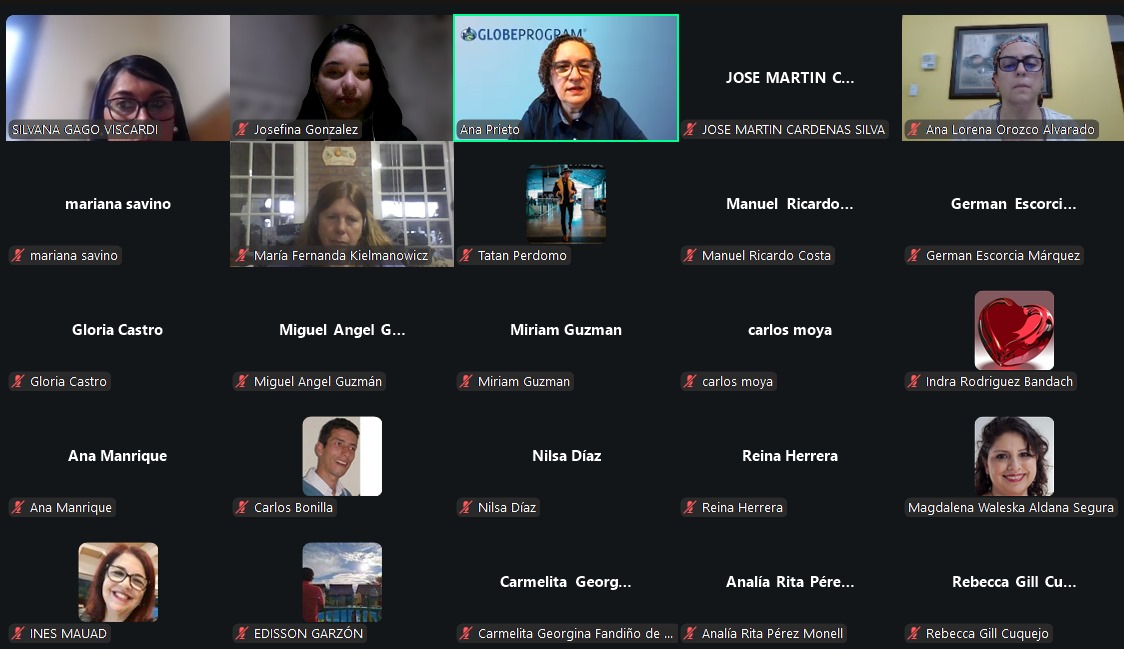 La apertura del taller fue dada por Mariana Savino (Coordinadora de la Oficina Regional de GLOBE LAC), quien agradeció el trabajo realizado por los comités de campaña. Luego continuó con una introducción al Programa GLOBE, a cargo de Ana Lorena Orozco (Coordinadora GLOBE de Costa Rica), para culminar con una presentación realizada por Ana Beatriz Prieto (Mentor Trainer de Argentina), quien expuso sobre la relación entre los protocolos GLOBE de Atmósfera, Biosfera e Hidrósfera y los mosquitos, la importancia de su abordaje, una introducción a la app GLOBE Observer Mosquito Habitat Mapper y una puesta en común de distintas ideas de proyectos de investigación vinculados a esta temática.